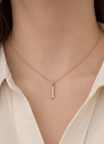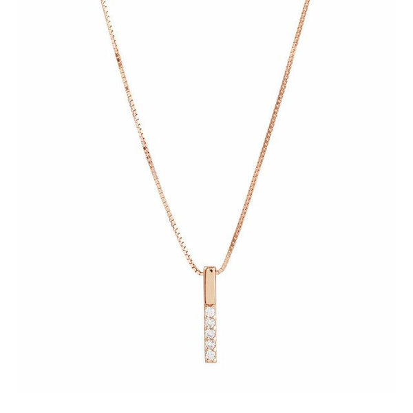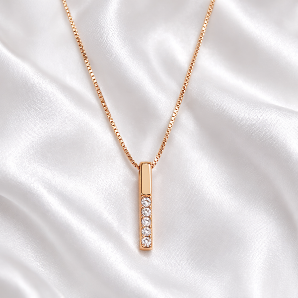 O Colar Rose Gold com Barra de Zircónias em Cobre Romanely é a escolha ideal para quem procura um acessório moderno com um toque elegante e sofisticado. Com um design minimalista, este colar apresenta um pingente em formato de barra vertical adornado com zircónias, proporcionando um brilho subtil que valoriza qualquer look.