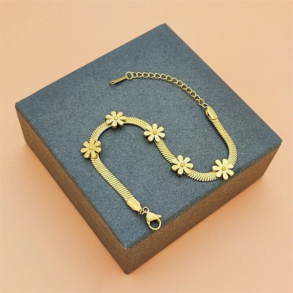 Pulseira Malha Plana com Flores Dourada em Aço Inoxidável: Um acessório para mulheres que amam a beleza, a qualidade e o minimalismo!