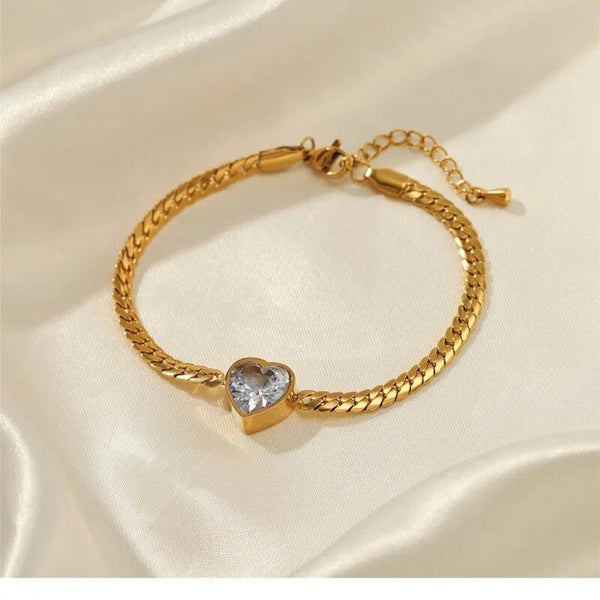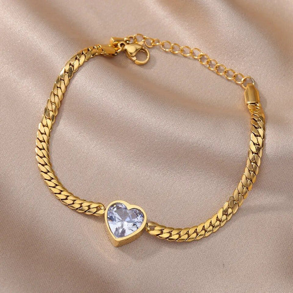 Com Pulseira Coração Dourada em Aço Inoxidável com Zircónia deixe seu look ainda mais radiante!
