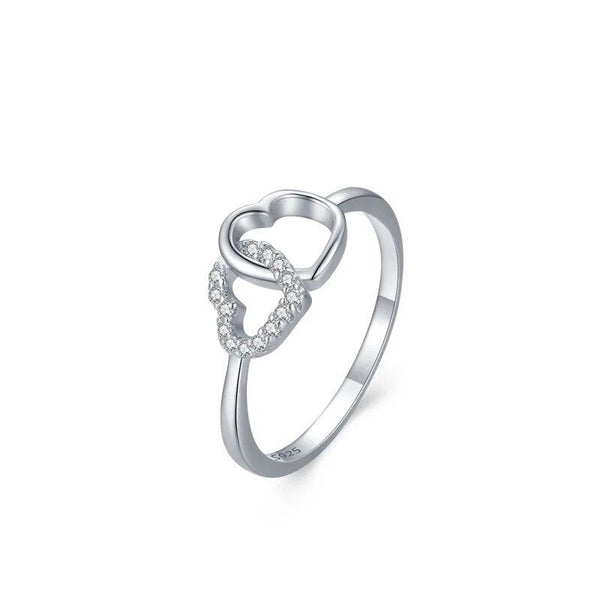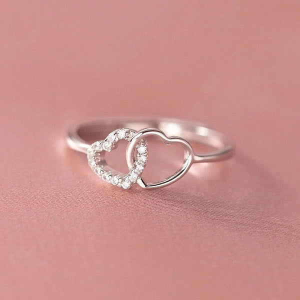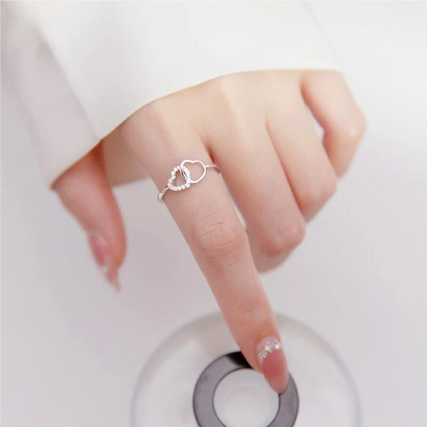 Anel Coração Intrelaçado Ajustável em Prata 925 com Zircónias : Brilho e amor em perfeita harmonia