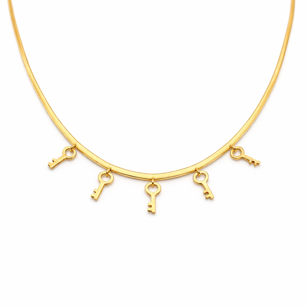 O Colar Dourado com Pingentes de Chave em Aço Inoxidável Romanely é o acessório ideal para quem procura um toque delicado e simbólico no seu estilo. Com um design composto por vários pingentes em formato de chave, destaca-se pela combinação entre elegância e um significado associado a novas oportunidades e conquistas.